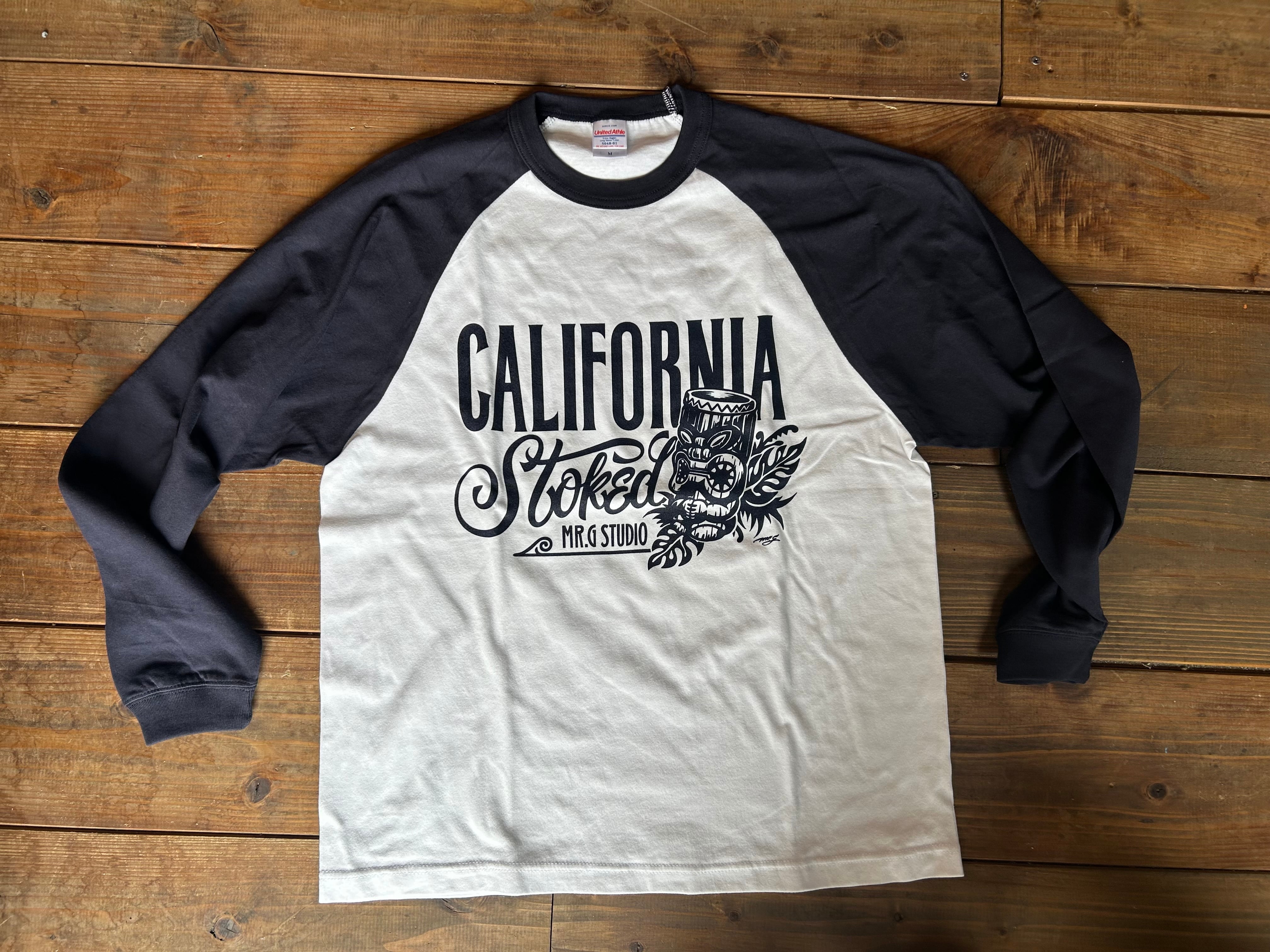 5.6オンスのラグランロングスリーブシャツにCalifornia stokedのロゴをフロントにプリントしてあります。