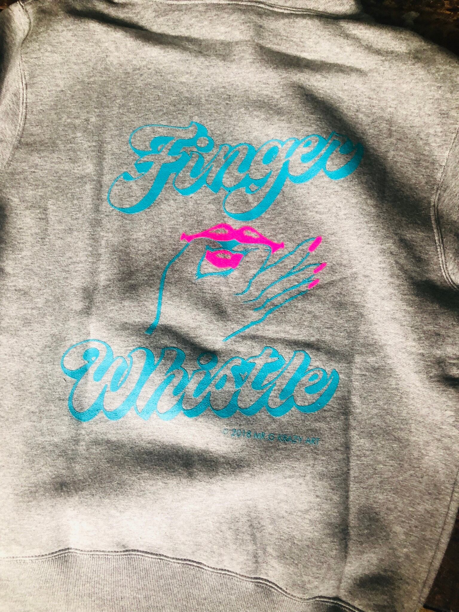 FINGER WHISTLE KLUBのグレーのパーカーです。