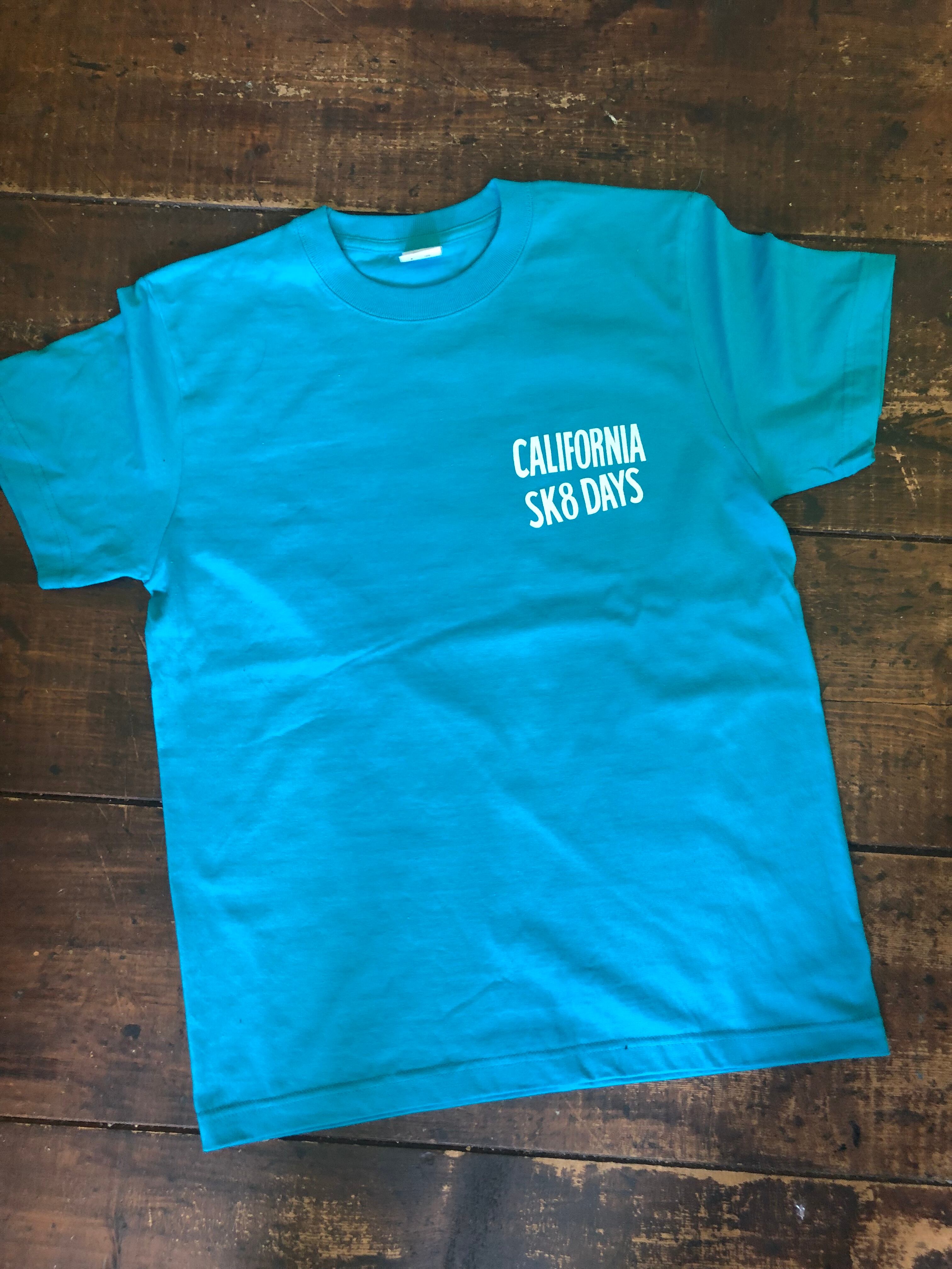 背面にホワイトインクで大きなイラスト入りで左胸にワンポイントのプリント入りです。