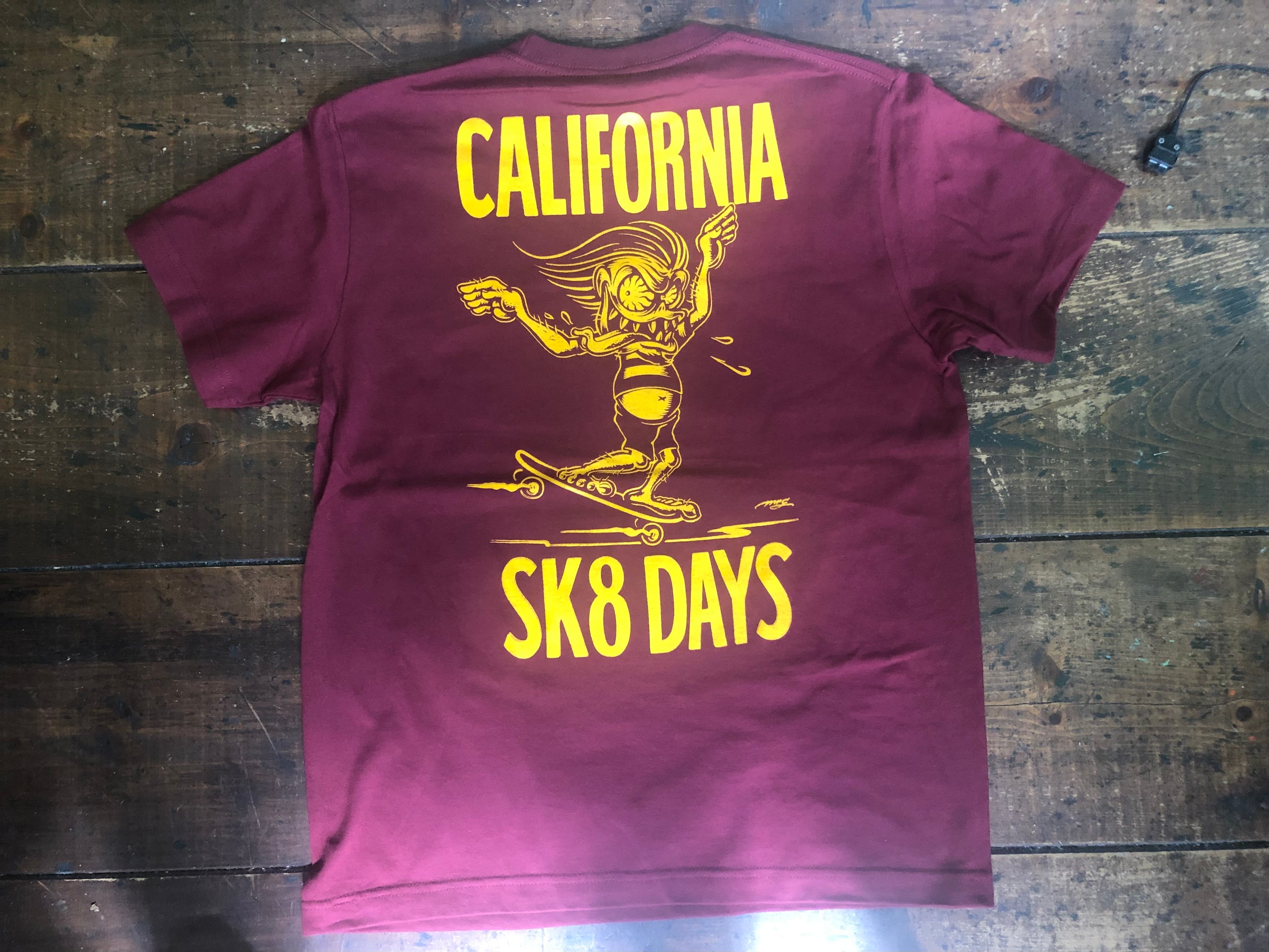 CALIFORNIA SK8 DAYS バーガンディ Tシャツ